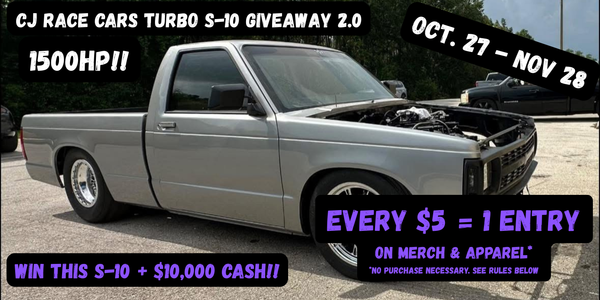 *TURBO S-10 GIVEAWAY 2.0. NO PURCHASE NECESSARY TO ENTER OR WIN. A PURCHASE WILL NOT INCREASE YOUR CHANCES OF WINNING. Open to residents of the 48 contiguous United States (except for AK & HI), the District of Columbia, and Canada (excluding Quebec), who are legal age of majority. Void in the states of AK, HI, the Province of Quebec, and where prohibited. Begins October27, 2025 and ends 11:59:59 PM ET on November 28, 2025. Skill-testing question required if Canadian-selected entrant. One Grand Prize is valued at $50,000 USD. Odds of winning depend upon the number of eligible entries received. See Official Rules for complete details including how to enter without making a purchase. Sponsor: CJ Media LLC, 4767 Drane Field Road, Lakeland, FL 33811.