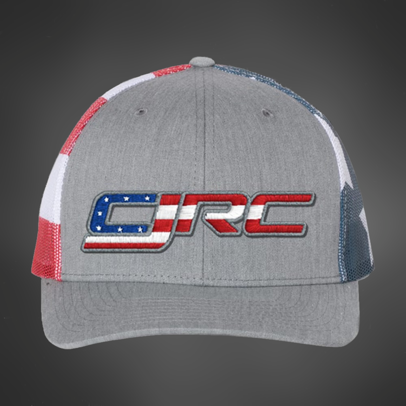 Richardson snap back style hat featuring the CJRC logo embroidered in red, white and blue.
