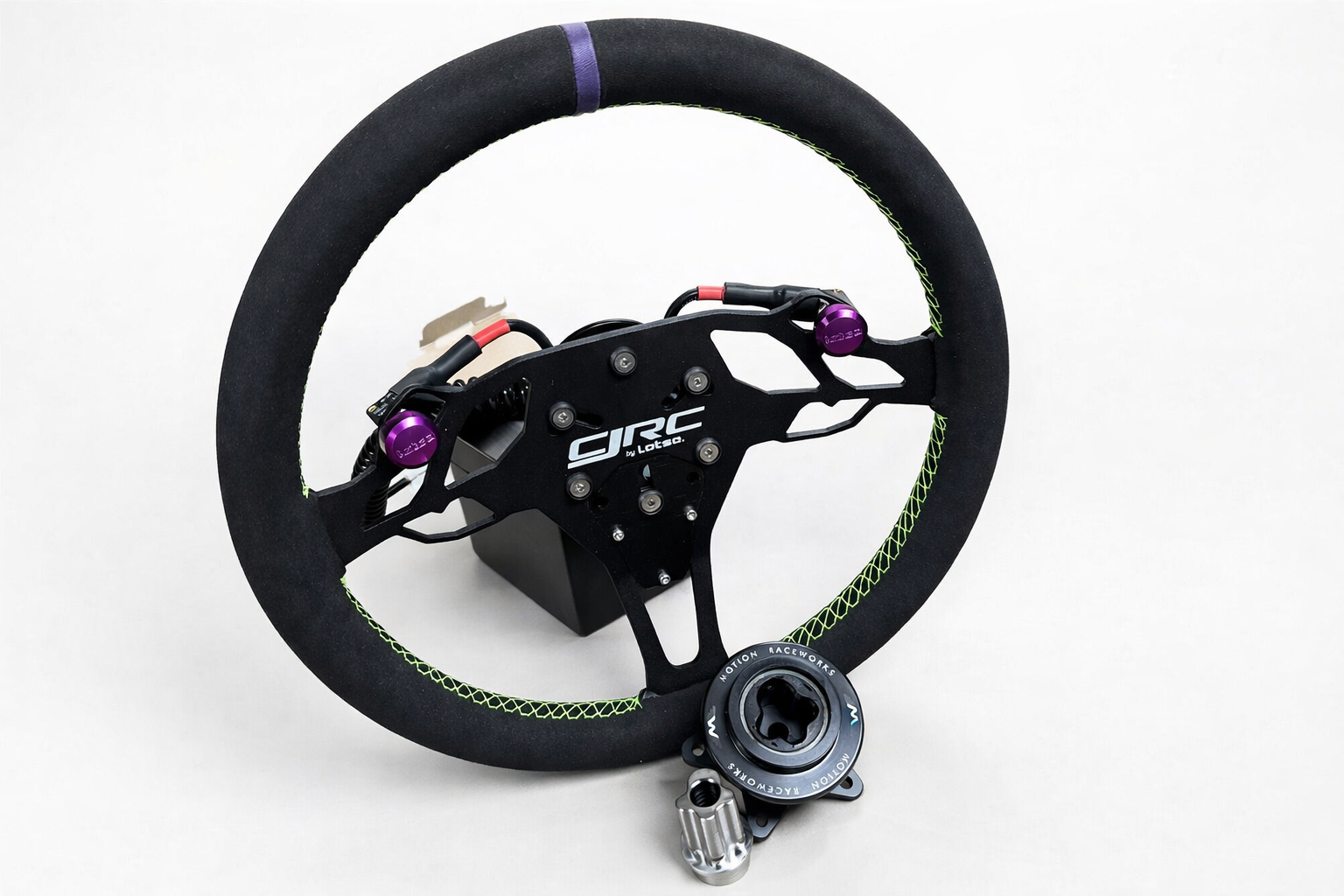 Experience precision handling with the CJRC Custom Lotse ProMod Drag Race Steering Wheel. Built for serious competitors, this purpose-engineered wheel features the iconic CJRC logo and signature color scheme. You can buy the steering wheel buy itself, or add the button package which includes 2 pre wired buttons and is already pre wired for 4 buttons if you choose to add more. you can also add the Motion raceworks quick disconnects hubs in steel or titanium.
